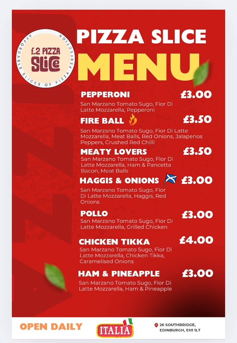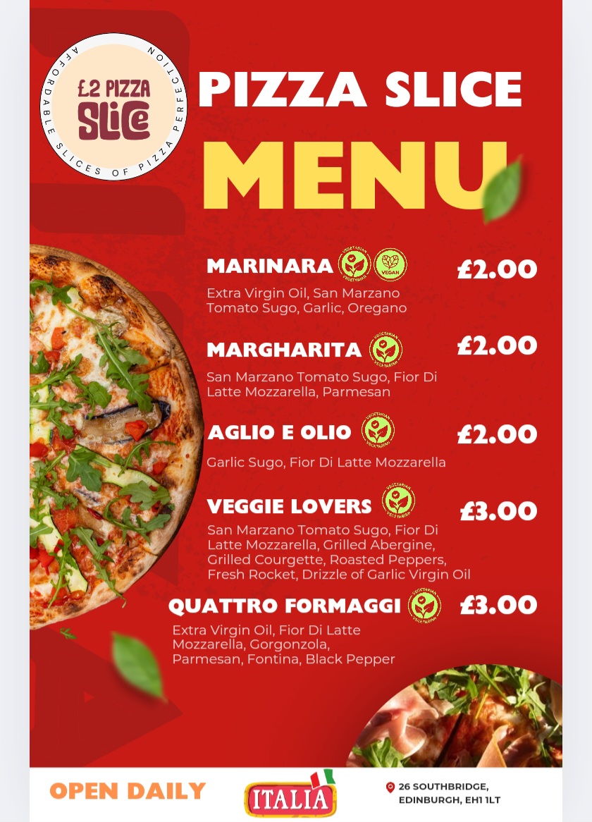 Whether you're grabbing a quick bite during the day or satisfying late-night cravings, £2 Pizza Slice is certainly a must-visit in Edinburgh.